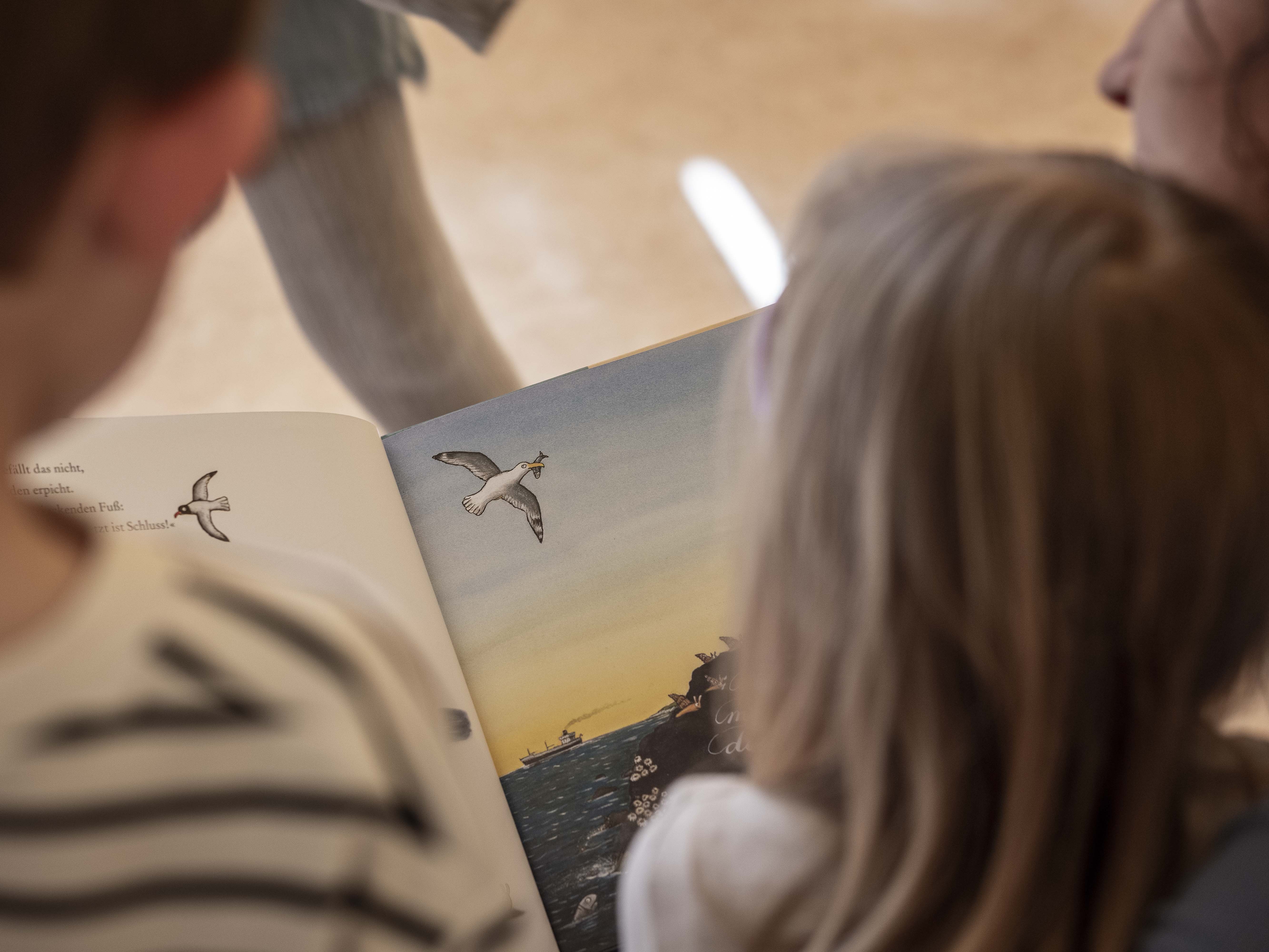 "Das drumherum um die Möwe ist Luft, ist doch blau, da sieht man ja", konstatiert das Mädchen glasklar bei der gemeinsamen Betrachtung des Bildes. Natürlich, Luft ist blau! Und manchmal auch grau, niesig, mit Weiß gemischt...